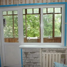 Двухстворчатое окно и дверь. Одна створка поворотно-откидная и одна глухая.