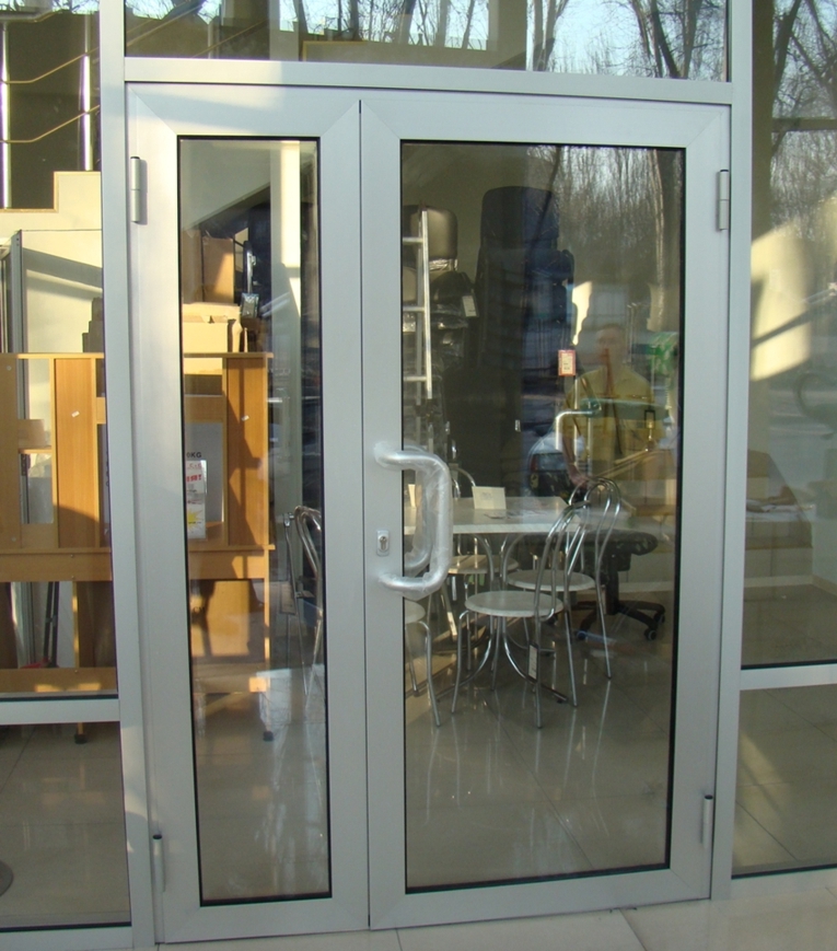 Для производства дверей используется широкий дверной профиль T- или Z-образного сечения (в зависимости от направления открывания створки). За счёт высокой жёсткости металла тут не применяют армирование, поэтому конструкция получается лёгкой и прочной.