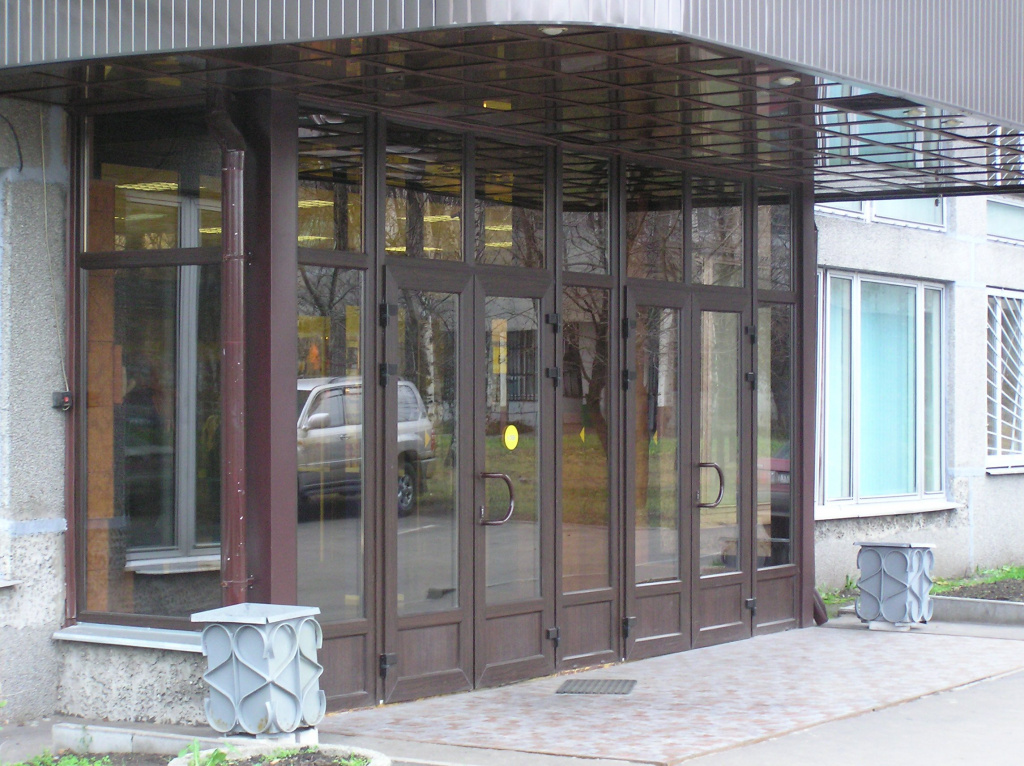 Клиенту дается выбор любой расцветки профиля по шкале RAL. В отличие от ПВХ-профилей, алюминий можно подобрать к дизайну входной группы или к окнам на фасаде жилого дома.