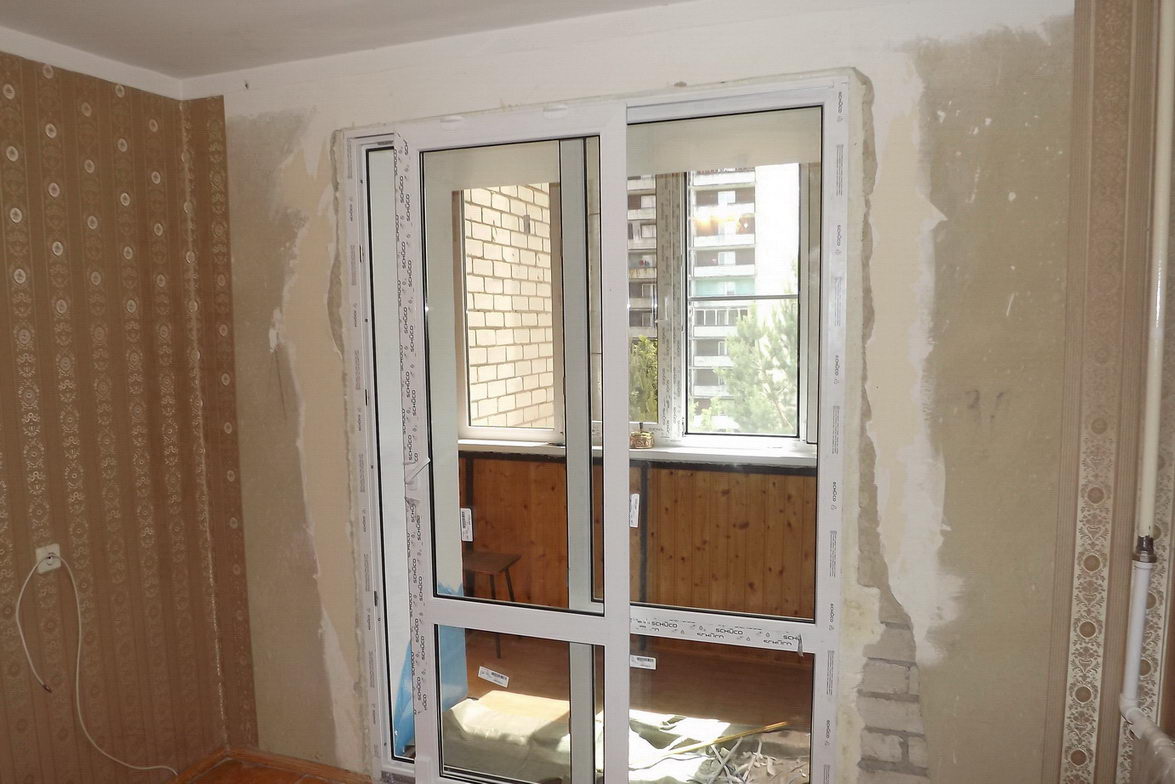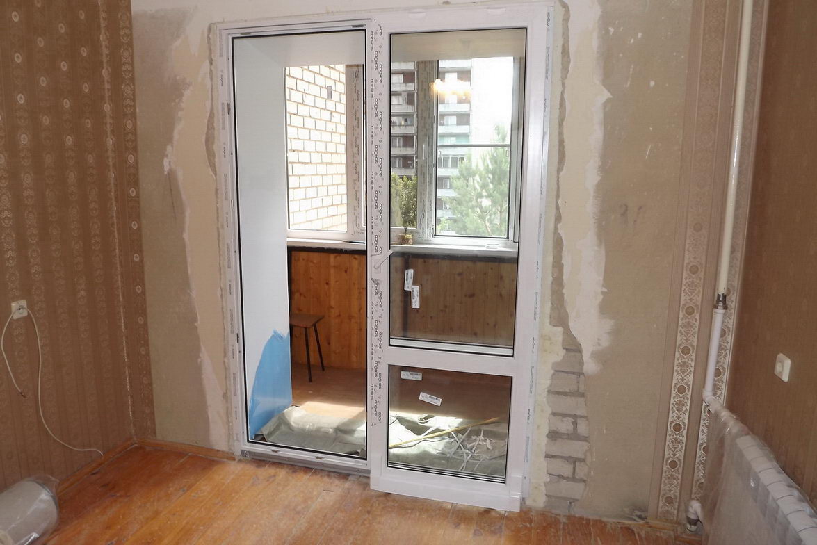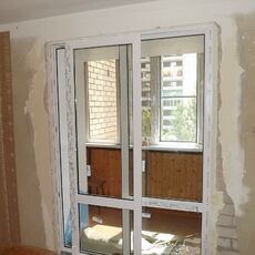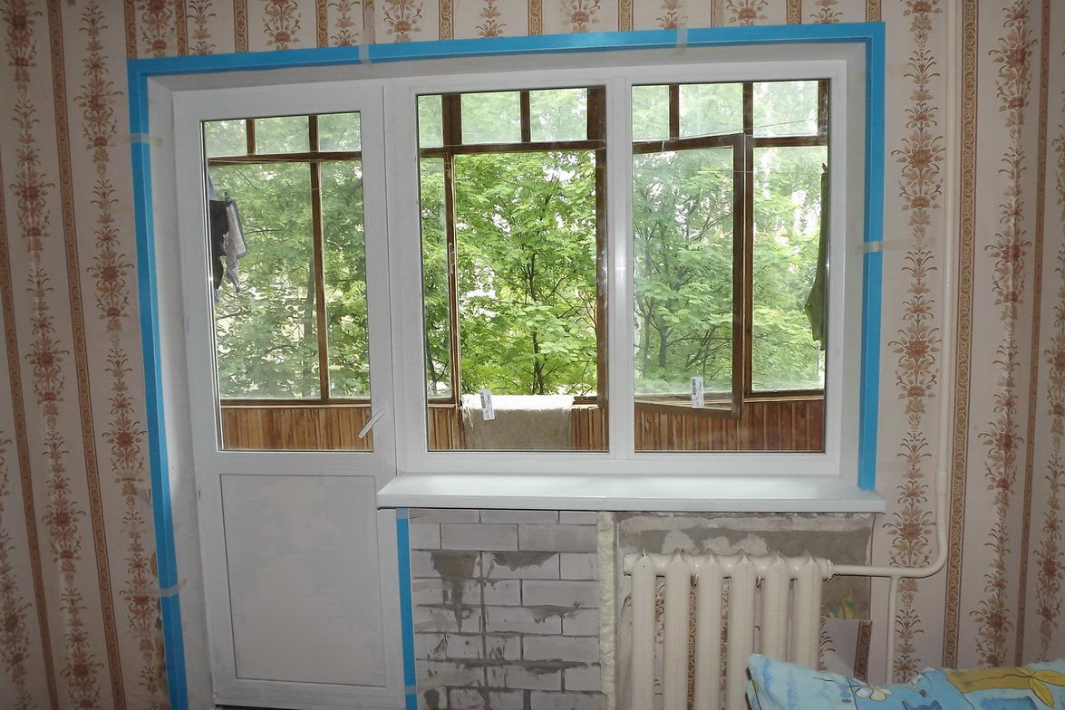 Двухстворчатое окно и дверь. Одна створка поворотно-откидная и одна глухая.